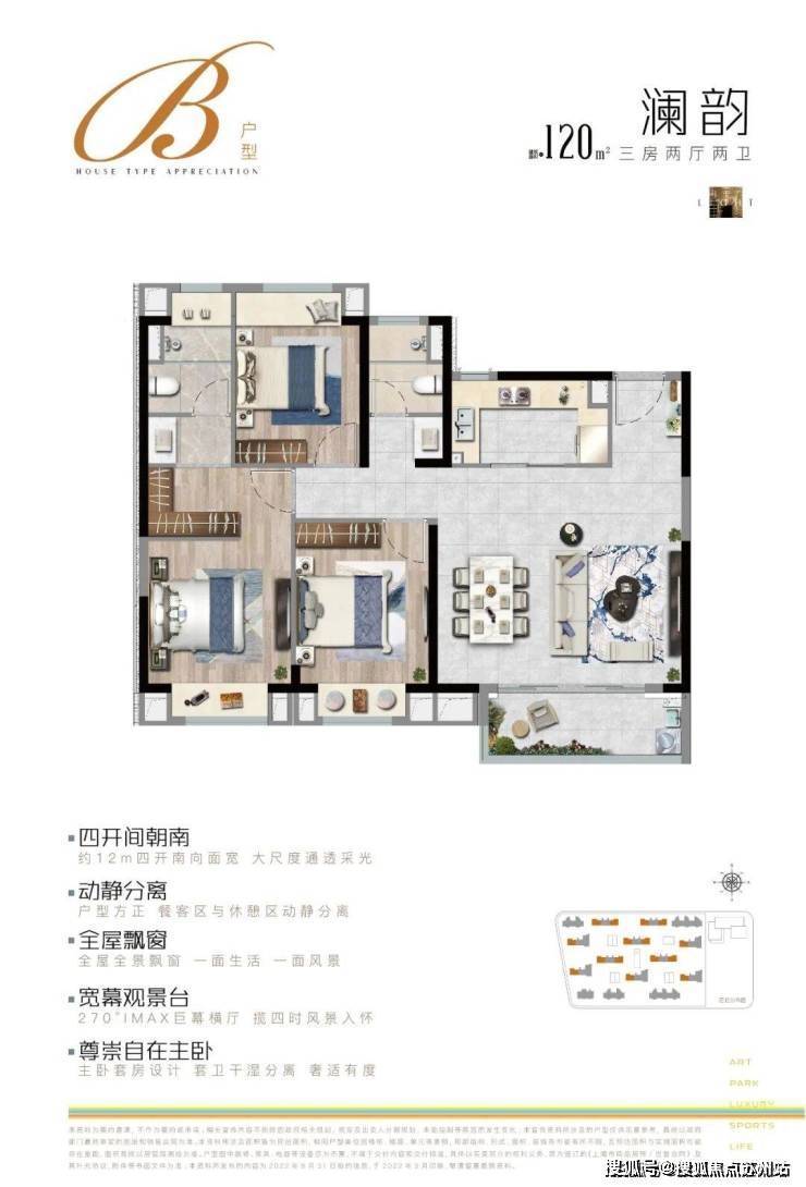 南北通透、主卧套房规划、干湿别离以及动态别离等等优质户型应该有的特质这个户型都具有。