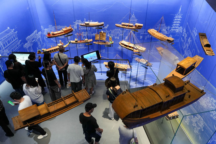 10月11日,游客在位于江苏省扬州市的中国大运河博物馆内参观。新华社记者 李博 摄